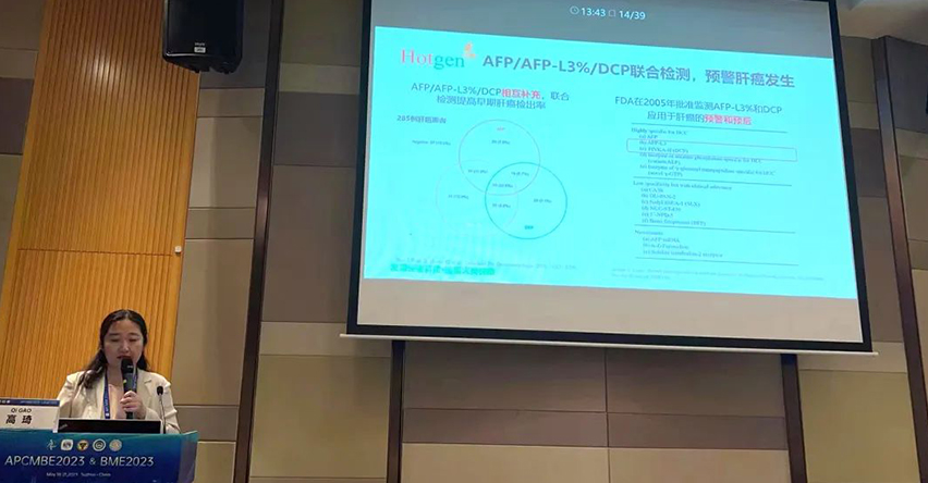 5月21日,熱景生物副總經理高琦博士受邀在“醫(yī)學檢驗工程:醫(yī)工協同 融合創(chuàng)新”分會場作主題為《多組學技術在腫瘤早期診斷中的應用》的精彩報告。在這次精彩的報告中,高琦博士向我們展示了熱景生物應用獨創(chuàng)的糖捕獲技術,在腫瘤早篩早診研究領域的領先進展,特別在肝癌領域,基于大數據和人工智能技術,實現惡性肝病的預防、早期發(fā)現、動態(tài)監(jiān)測,為患者提供全方位的肝臟健康管理解決方案。