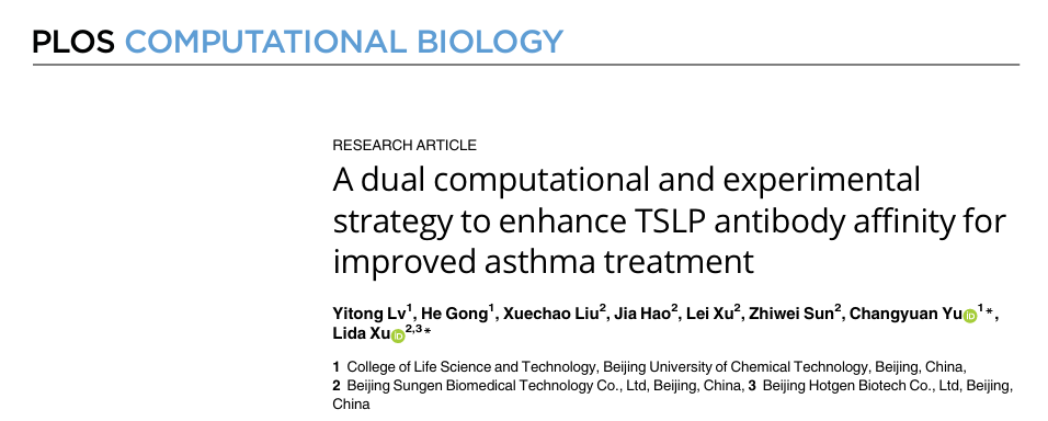 近日,熱景生物“X-Gen AI新藥發(fā)現(xiàn)與設(shè)計(jì)研究中心”在生物信息學(xué)與計(jì)算生物學(xué)領(lǐng)域高影響力經(jīng)典期刊PLOS Computational Biology上發(fā)表了題為“A Dual Computational and Experimental Strategy to Enhance TSLP Antibody Affinity for Improved Asthma Treatment” 的論文(doi: 10.1371/journal.pcbi.1011984)。“X-Gen AI新藥發(fā)現(xiàn)與設(shè)計(jì)研究中心”聯(lián)合培養(yǎng)博士生呂祎彤為論文第一作者,許立達(dá)研究員為論文主要通訊作者,北京化工大學(xué)喻長遠(yuǎn)教授為共同通訊作者,舜景生物孫志偉總經(jīng)理為該套流程的搭建提供了極其重要的指導(dǎo)。