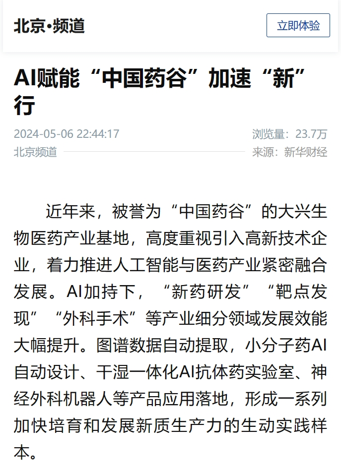 新華社:AI賦能“中國(guó)藥谷”加速“新”行