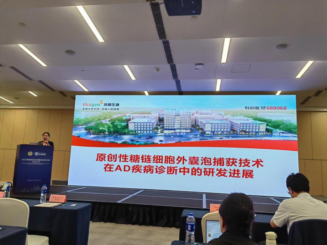 在分論壇,許立達(dá)研究員作了“原創(chuàng)性糖鏈細(xì)胞外囊泡捕獲技術(shù)在AD疾病診斷中的研發(fā)進(jìn)展”主題報告,詳細(xì)介紹了熱景生物原創(chuàng)的糖鏈外泌體捕獲技術(shù),以及在AD、肝癌、胃癌等眾多領(lǐng)域的研究進(jìn)展,獲得在場人員的高度認(rèn)可。