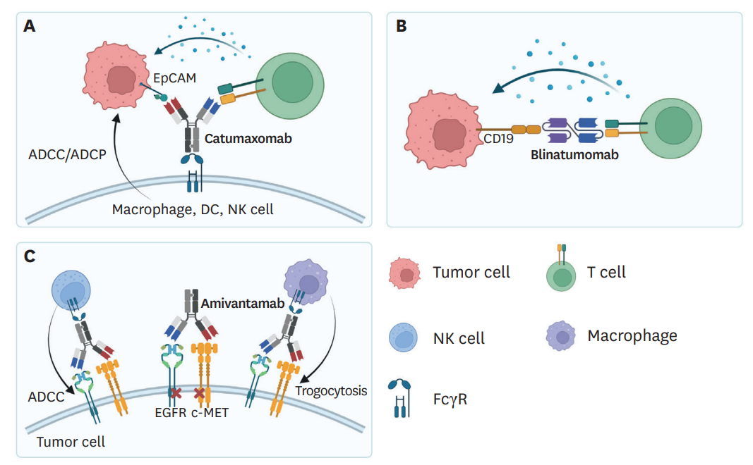 T細胞接合器利用TAA和TCR成分(主要是CD3),它們連接腫瘤細胞和T細胞,繞過TCR-MHC-I相互作用。因此,無論抗原特異性如何,T細胞結合器都會觸發(fā)T細胞活化,產生包括穿孔素和顆粒酶在內的細胞毒性分子,以殺傷腫瘤細胞。