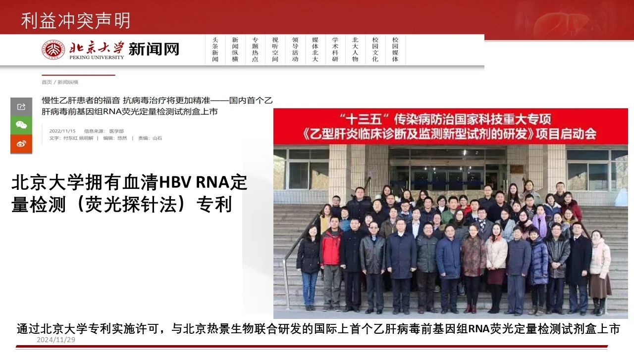 PS:北京大學(xué)擁有血清HBV RNA定量檢測(cè)(熒光探針?lè)ǎ@ㄟ^(guò)北京大學(xué)專利實(shí)施許可,與北京熱景生物聯(lián)合研發(fā)的國(guó)際上首個(gè)乙肝病毒前基因組RNA熒光定量檢測(cè)試劑盒已上市。