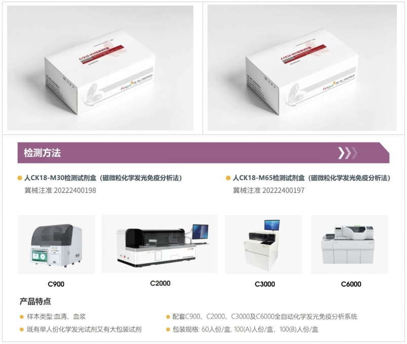 熱景生物新品-CK18(化學(xué)發(fā)光法國(guó)內(nèi)第一證)采用先進(jìn)的化學(xué)發(fā)光免疫分析技術(shù),具備極高的靈敏度和特異性,能夠準(zhǔn)確檢測(cè)血清中的CK18-M30和CK18-M65水平。